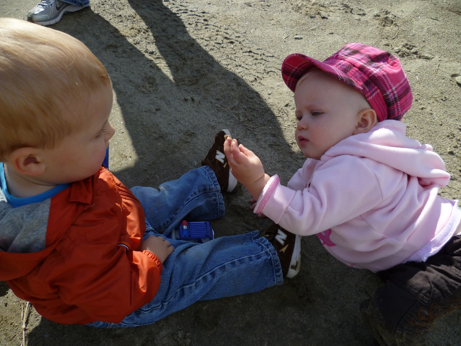 We do love being outside playing. Maizey got nice and dirty, she ate some sand, she played/annoyed her friend. She was worn out when we got home. Love love love those days.